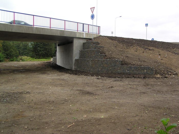 Most leží na komunikaci k OC Tesco v Karlových Varech. Jedná se o třípolový most přes Chodovský potok a biokoridor. Nosnou konstrukci tvoří spojitá deska z předpjatého betonu bodově podepřená. Rozpětí polí je 13,5+18,0+13,5 m. Most je založen na velkoprůměrových pilotách. Mezilehlé podpěry (sloupy) jsou vetknuty přímo do hlav pilot (systém "pilíř-pilota").